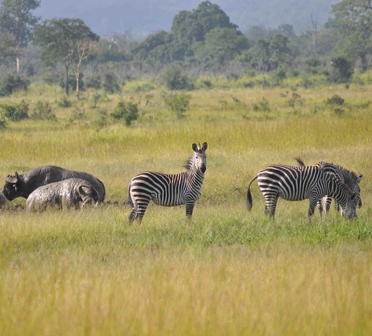 Mikumi forms the northern border of the Selous Game Reserve, and is one of the most accessible of the Tanzanian national parks. Mikumi is rich in wildlife and contains buffalo, elephant and lion. Also found are wildebeest, zebra, impala, warthog, hippo, and giraffe. Most of the animals can be seen at all seasons. Elephants can be seen throughout the area and buffaloes totaling some 3,000 are to be found on the treeless grassland. Vegetation: The Mkate River Floor Plain with its hard ridges, swamps and black clay grassland, the miombo woodlands lie on hills of east and west, and the rivers with their fringe of tall trees and dense thickets. The TAZARA (Tanzania-Zambia) railway line marks the boundary of Mikumi with Selous to the south.